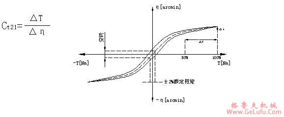迟滞曲线:迟滞检测是为了得出齿轮箱的扭转刚度。通过检测得到迟滞曲线。检测时,先将齿轮箱输入端固定住,然后在输出端的两个旋转方向分别持续地加载到T2B最大加速力矩,继而逐步卸载,用仪器记录下力矩的仿差角,得到的曲线是一条闭合曲线,从中可以计算出齿轮箱的回程间隙(jt)和扭转刚度(Ct21) 。 邮箱:china@gelufu.com